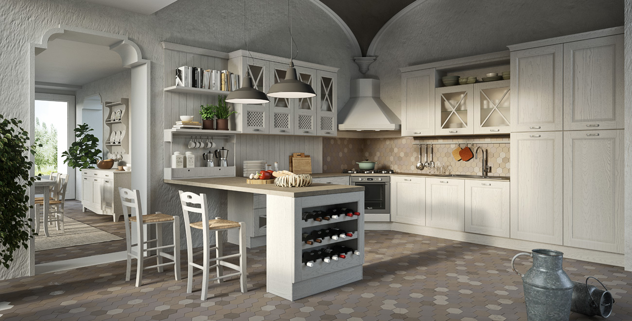 The CHARM kitchen revives the charm of a life of simplicitynd family traditions, playing on the material energies which defy the signs of ageing and fashion.