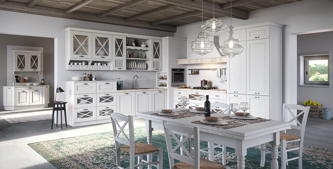 This model stands out for the different solutions it can provide and for the many details that can be personalized and therefore contribute to the uniqueness of the whole kitchen, which can be designed in a classical or contemporary style, thanks to the charming furnishing elements.