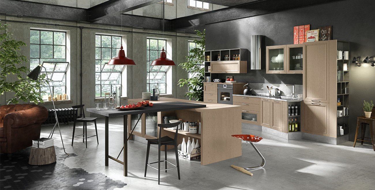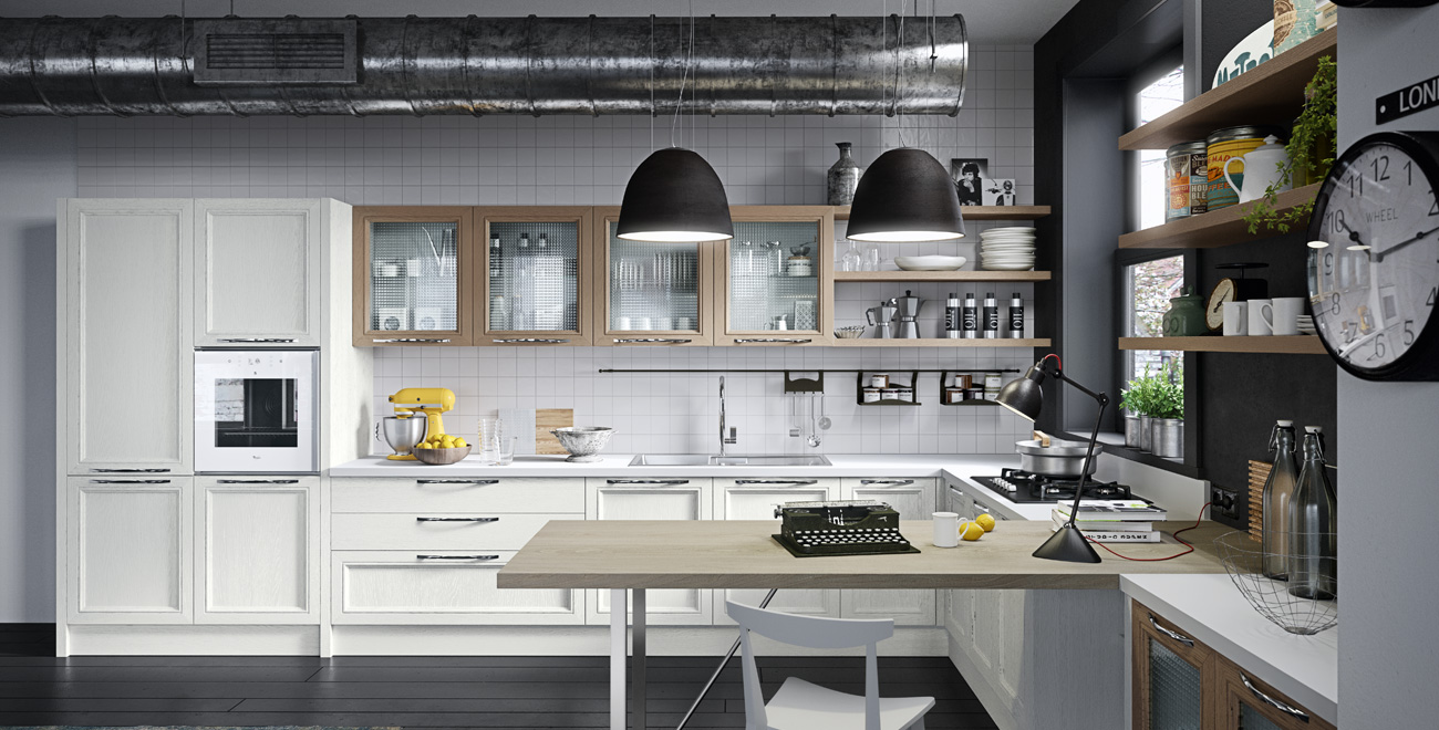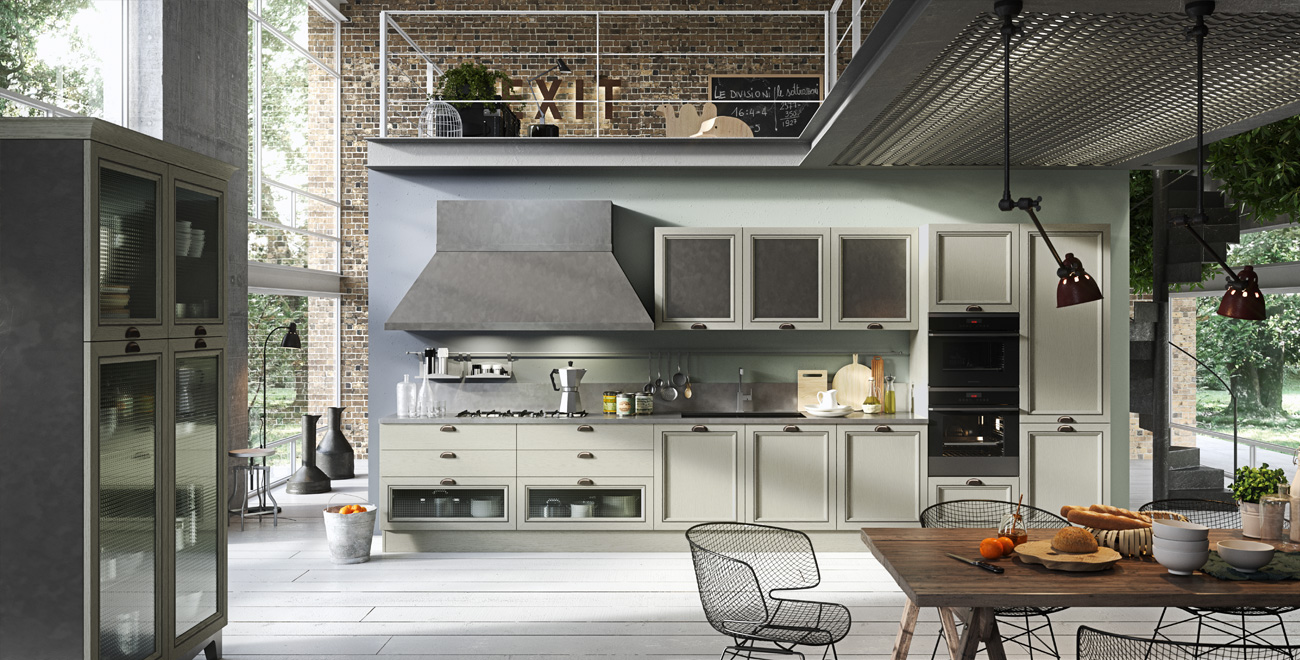 Relegance is a product with a modern and metropolitan touch; combinations that recall past eras, but placeable in many settings. It’s an extremely friendly kitchen for the users, with a strong material footprint and a juxtaposition of heterogeneous materials such as stainless steel panel, silver decorated frames, white ash, clay, titanium and green finishes, handles or concave c-channel.