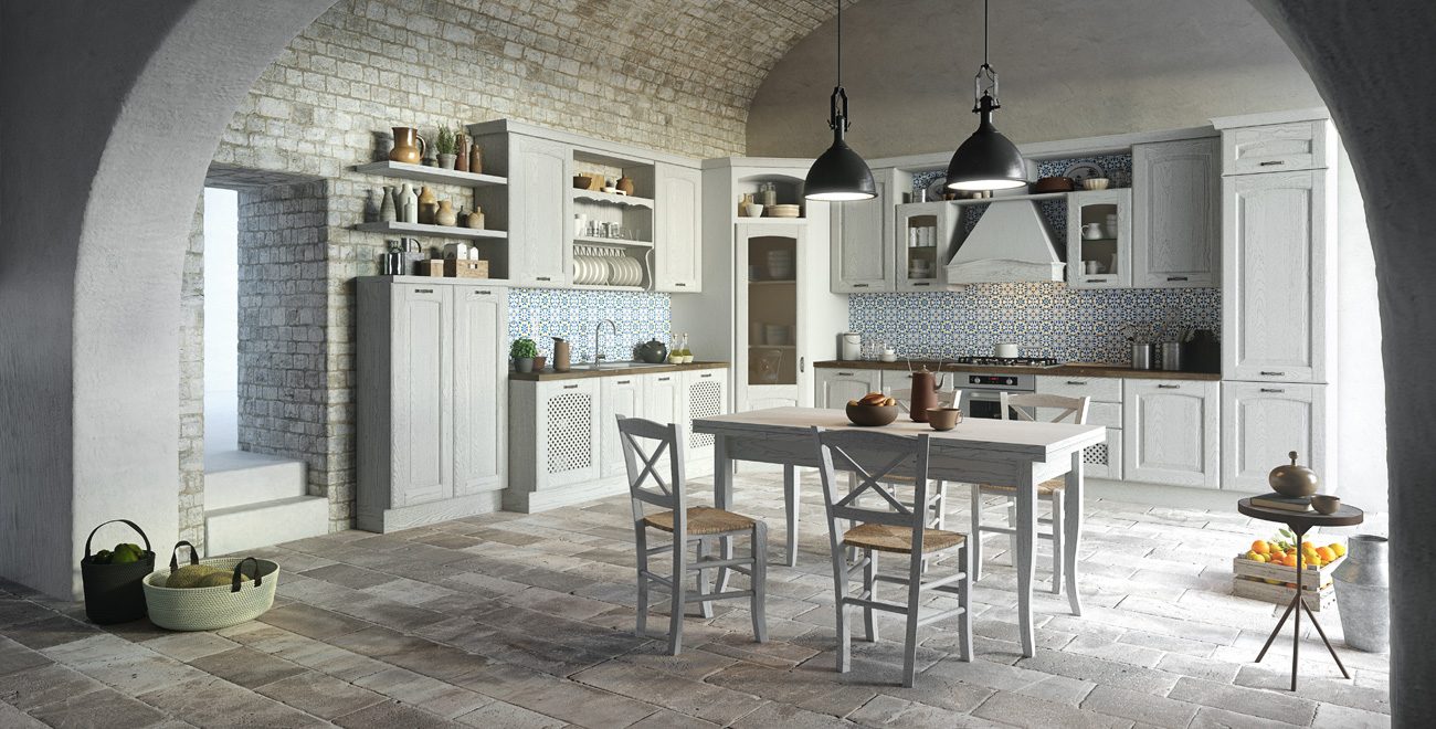 With charisma our wise artisan hands created Roma kitchen, classic style which cross history, places and lands deepened in the green, in Mediterrean fragrances of warm and natural colours. The kitchen ambience reflects all our desires, the exterior beauty combines to convenience requested by daily gestures which turn into quite rituality.